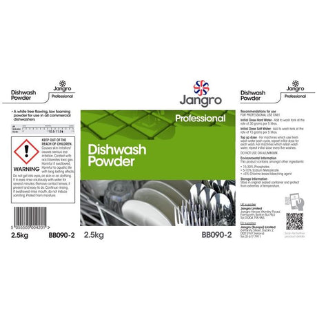 Jangro Dishwash Powder 2.5kg | BB090-2 | Commercial Dishwasher Detergent