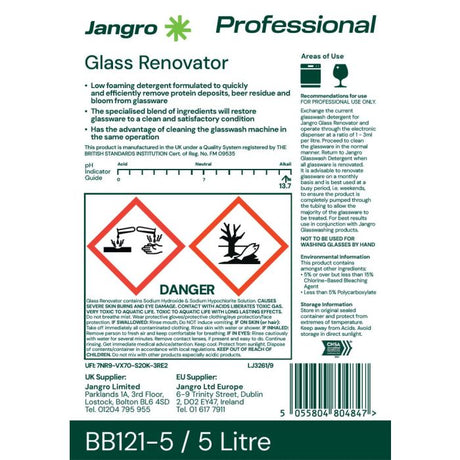 Jangro Glass Renovator 5L | BB121-5 | Restores Sparkle to Glassware