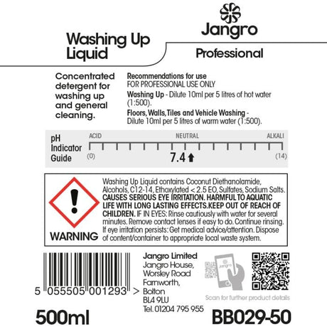 Jangro Easy Washing Up Liquid 12x500ml | BB029-50 | Concentrated Manual Cleaner