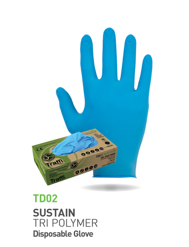 Traffi TD04 Extra Large Sustain Tri Polymer Disposable Glove 100