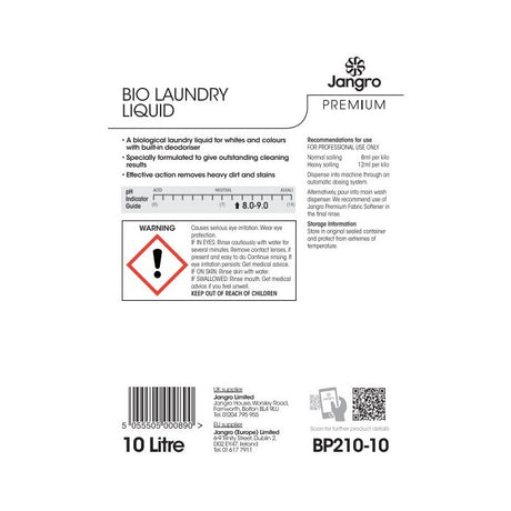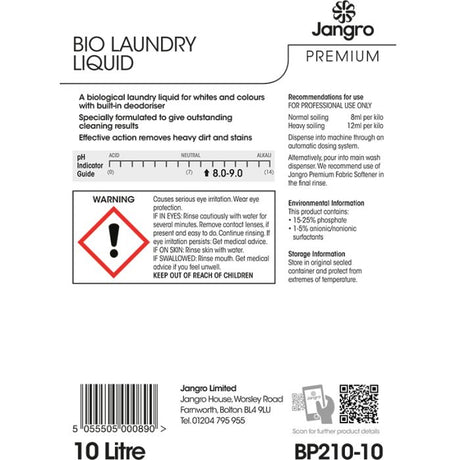 £1.25Unit price /UnavailableIn stock (82 units)Jangro Premium Bio Laundry Liquid 10L - BP210-10 | Enzyme-Powered Commercial Detergent