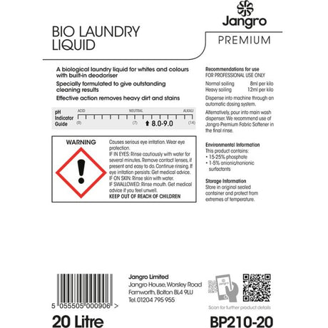£22.38Unit price /UnavailableJangro Premium Bio Laundry Liquid 20L - BP210-20 | High-Performance Commercial Detergent