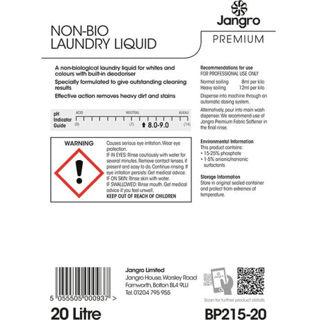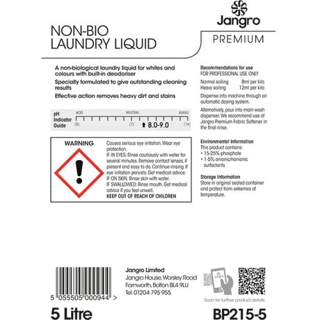 £10.55Unit price /UnavailableJangro Premium Non-Bio Laundry Liquid 5L – BP215-5 | Gentle & Effective Cleaning