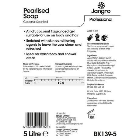 £1.85Unit price /UnavailableJangro Pearlised Soap Coconut Scented 5L BK139-5