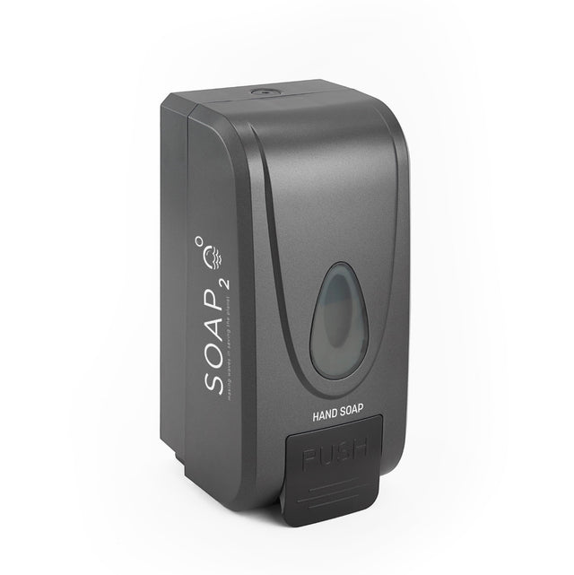 SOAP₂O contemporary and stylish manual dispensers deliver the perfect dosage to reduce consumption by 85% meaning less refills and cost savings. Dimensions 235 mm x 115 x 110 mm